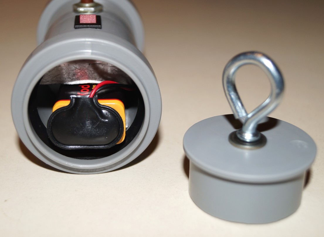 Режим работы пинпоинтера утрировано можно назвать "умно-динамический". Основной цикл похож на статический, но параллельно идет постоянная коррекция дрейфа поискового контура. Чувствительность в данном приборе настраивается автоматически в зависимости от разных факторов, основной из которых является параметры самой поисковой катушки. В данной модификации пинпоинтера я применил прямоугольную многослойную катушку, жестко намотанную на корпус из специального термостабильного пористого пластика, применяемого в металлообработке (для улучшения добротности), а также уже известную схему индикации разряда батареи. Но из-за повышенных требований к источнику питания индикатор разряда сработает при понижении напряжения нагруженной "Кроны" до 6,5-6,6В. Некоторые технические характеристики получившегося прибора: Диаметр катушки - около 50 мм (если её распрямить до круглого состояния). Применение программируемого микроконтроллера. Настроенная частота работы - около 18,5-18,7 кГц. Потребляемый ток - от 17mA до 29mA (в зависимости от режима работы). Температура стабильной работы прибора - от -10 до +40 град.С. Световая и звуковая индикация обнаружения (различается, в зависимости от типа металла). Тип питания - батарея типа Крона 9V. На крышке батарейного отсека имеется крепление под карабин, для более удобной переноске прибора. Стабильная дальность обнаружения цели: 5 копеек Н2 - до 5,5 см. 5 копеек 40-ых годов - до 4,2 см. 1 копейка Н2 - до 3,7 см. 1 копейка 40-ых годов - до 2 см. Чешуйка (серебро) - до 1,7 см. 10 рублей ходячка - до 3,7 см. Корпус выполнен из сантехнических элементов и обеспечивает полную пылезащищенность. Батарейный отсек и отсек с электронной схемой разделены герметичной перегородкой. Катушка залита эпоксидной смолой. Органы управления представляют из себя миниатюрный выключатель питания и кнопку сброса. Основные поисковые зоны с максимальной дальностью обнаружения у МалышFM2(pi) расположены сверху и снизу отсека с катушкой при расположении прибора параллельно земле органами управления вверх. Но пинпоинтер "видит" цели и по периметру катушки. Видео работы: Тест самодельного пинпоинтера МалышFM2(pi) в домашних условиях. Тесты прибора в условиях реального копа, при температуре от 0 до +5 градусов, показали отличные результаты. Стабильность и безошибочность работы дискриминатора, а также полное отсутствие реакции на грунт. В некоторых случаях дискриминатор пинпоинтера уделывал по показаниям X-terra 705. В общем данный пинпоинтер превзошел все мои ожидания и занял почетное место в наборе оборудования для копа. Кого заинтересует данный пинпоинтер, обращайтесь также в личку либо на почту robozone@yandex.ru. Один прибор уже готов. Цена с учетом более сложной настройки, необходимости программирования контроллера и применения специализированного оборудования в производстве - 1900 рублей. Особенности работы с данным прибором: 1. При первом включении прибора необходимо время на разогрев генератора - обычно это не более 10-50 секунд. При этом прибор будет издавать один длинный и 3 коротких сигнала. После прогрева он издаст звук "фьють" и готов к работе. 2. Перед началом работы прибором желательно подержать его в выключенном состоянии около 2-4 мин. при температуре окружающей среды, для выравнивания температур компонентов пинпоинтера. 3. При отсутствие цели вблизи датчика через кажды