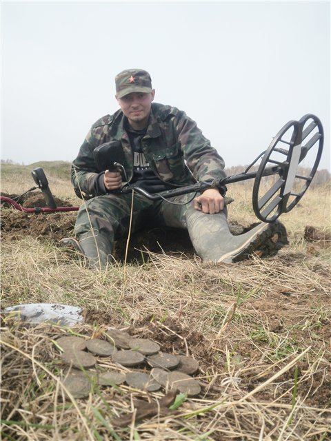QUOTE(Бесеркерк @ May 5 2011, 19:11) Не может прибор видеть больше,чем по воздуху.Это уже давно все перетерто. Для средней монеты 30 см в умеренно минерализованном грунте это предел...а насчёт "двух штыков", надо понимать так - первый штык это на сколько сунули лопату в землю - если цель не выкопана, сунули второй раз ещё на сколько-то... И вот она - деньга Анны "c двух штыков"... Точно определить глубину залегания можно только при расчистке монеты в грунте (как в раскопе у археологов) или организовать правильный полигон для тестирования приборов с заложенными на строго заданных глубинах по определённым правилам различными монетами. |