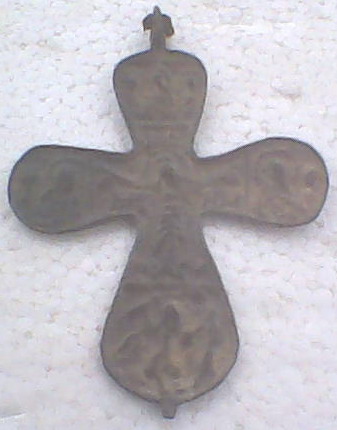 QUOTE Интересно было бы взглянуть и размеры выставить Фото ужасное( сотовый телефон), но всвсё равно предварительно выставлю. И так размер: 65 на 45 мм., на фото плохо видно, но крест покрыт не ржавчиной, а что-то вроде позолоты. Я его практически не мыл. Ещё виден кусок верёвки в ушке. Ну а сюжет , я думаю очень не част ... Сниму фотоаппаратом и позже выставлю в металлопластику. А по поводу глубины, зря сомневаетесь. Если будет легче, то считайте , что поднял я его с 20-ти сантиметров. Просто в голову вовремя пришла мысль про свойства и режимы прибора, собственно из-за этого и было принято решение копать дальше, да и пин молодец помог найти точное место в яме. Сообщение отредактировано urman: Jun 4 2012, 12:12 Вложенные эскизы изображений -------------------- Всем удачи!