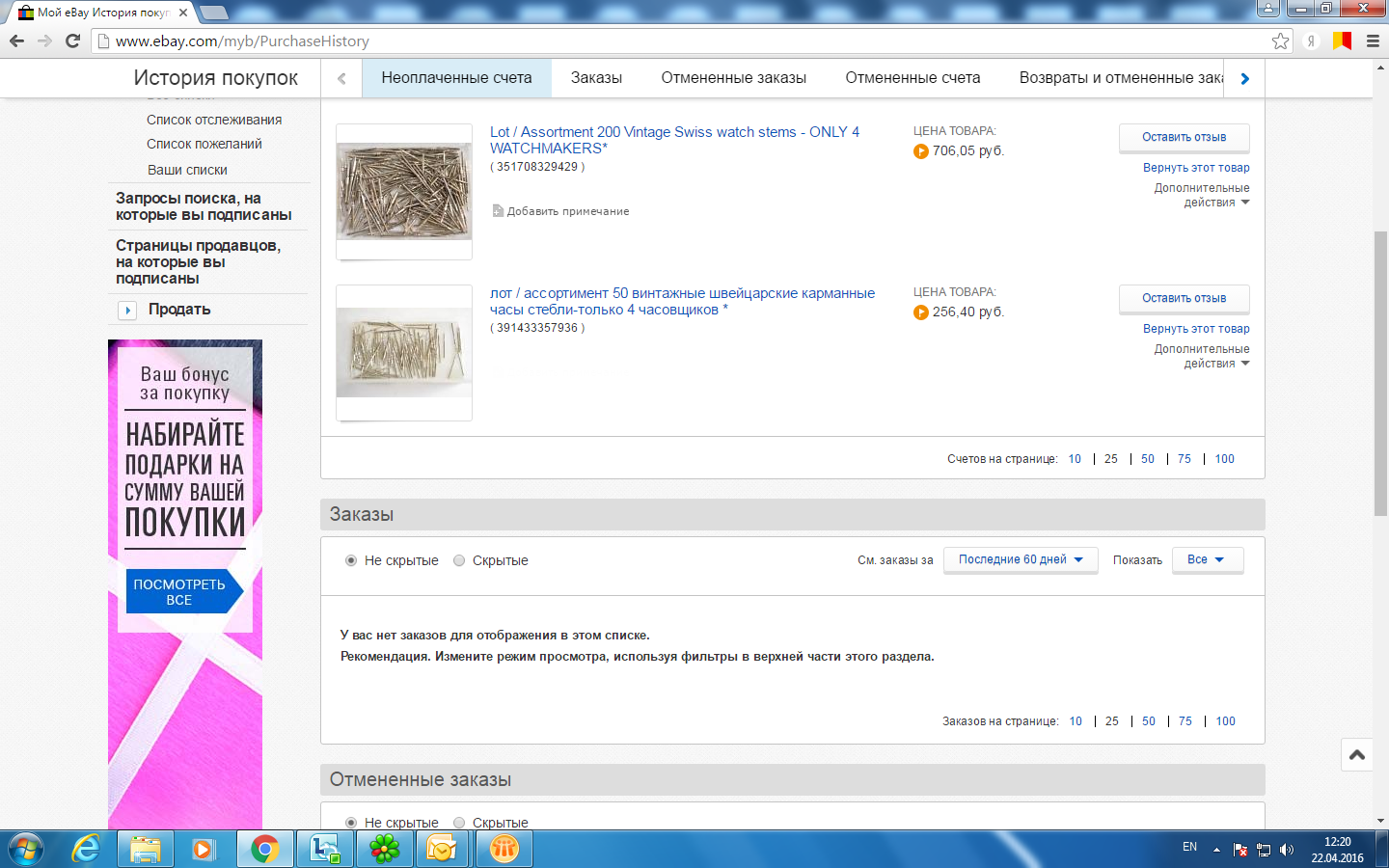 QUOTE(qwebek @ Apr 22 2016, 12:24) они у меня были как с месяц!!!куплены на ибэй, вот подтверждаю скриншотом из личного кабинета Фото валов, на фоне этой страницы. А скрин конечно знатный. ![]() -------------------- Вам бы к психологу... на кожаный диванчик.