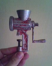 То есть данная мясорубка с остатками краски – более редкая, чем более распространенные серые под лаком более поздние подобные экземпляры мясорубок. В наличии также другие винтажные игрушки. 1900р + почта. Оперативная связь по почте: silv2000@lenta.ru |