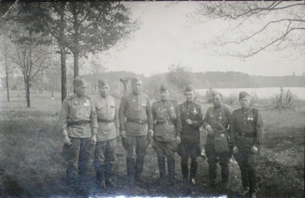 Мой дед Андрей. 1912 г.р., в Красной Армии с 1934 года. ВОВ встретил 22 июня 1941 года в Эстонии. Отступал в направлении Ленинграда, был легко ранен. Зимою 1941-1942 получил тяжёлое ранение, был эвакуирован в тыл, 1.5 года по госпиталям, запасной полк, в 1943 опять на фронт. Командир роты, нач. штаба батальона, командир батальона гвардейского стрелкового полка, майор, войну закончил в Восточной Пруссии. Вышел в запас в конце 50-х в звании подполковника. Ушёл в 1987 году.