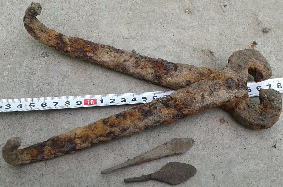 На поселуху, домонгол наткнулся (сопутка-керамика и наконечники. Наверное 10-11 века. А разрабатывали песчаный карьер.И в отвале с наками выскочили вот такие железные щипцы. Думал современные, а потом у Белорыбкина нашел описание подобных (даже утрат больше) относящихся к 11-13в. Парни как назыв. ветка по старине? Но сначала сюда.