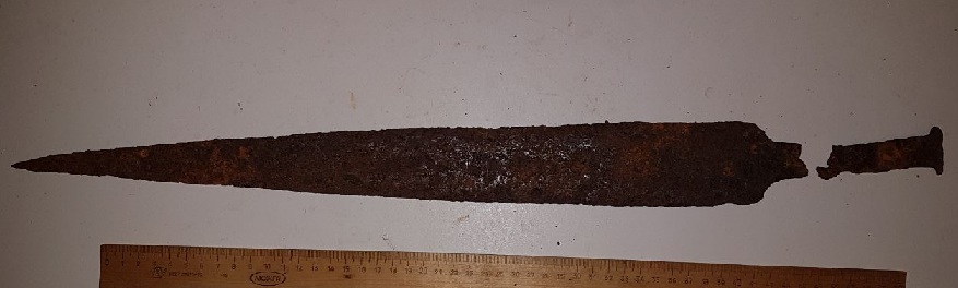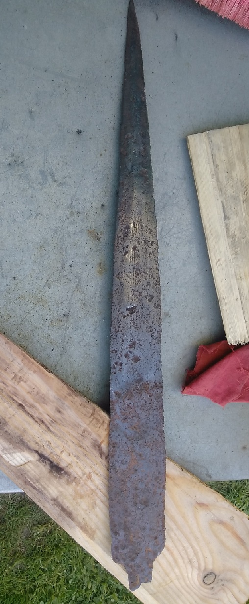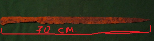 Скифский меч. Пришёл вот в таком виде. Клинок пожраный ржавчиной с отгнившей рукоятью. Толщина рукояти...да нет таковой,крошилась пальцами. Вот собственно фото. ![]() Вложенные эскизы изображений -------------------- Топоры на рукоятях и щитах продаю.Изделия на заказ.Куплю топоры,мечи,булавы и железные кистени