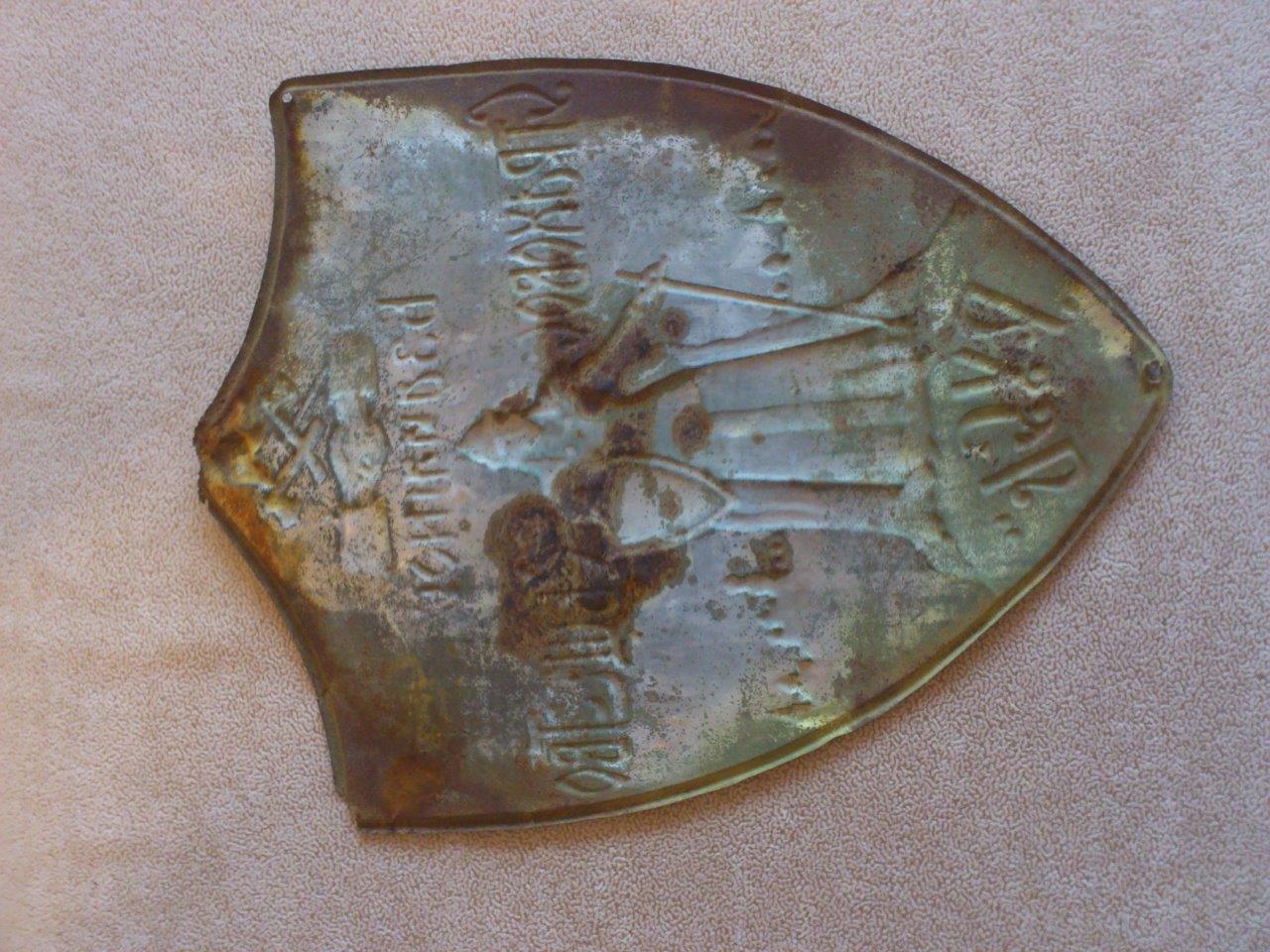 Хочу Вашему вниманию предложить еще одну восстановленную страховую доску. Ранняя латунная страховая доска Орловской губернии с размерами 123х165 мм. Эта табличка была найдена камрадом с помощью МД на месте деревни Стретенье.