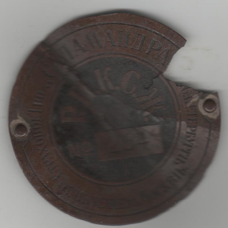 Вот как это было. Очередной подарок от камрадов, любителей копа. Этот артефакт был найден в земле на месте старой деревни. Замечательная страховая вещь появилась в моей коллекции – небольшая латунная страховая бирка "Саламандры", толщиной около 1.2 мм. Предмет маленький, а раритет! Скорее всего бирка приклепывалась к материалу толщиной около 1.5 – 2.0 мм (металлический ящик для перевозки, сумка из толстой кожи...?). Об этом говорят длины заклепок. Что-то должны прояснить буквы на бирке, но как их расшифровать? Вопросов больше, чем ответов. У кого появятся какие мысли по буквам, прошу высказываться в теме. Вот в таком виде я ее получил. Вложенные эскизы изображений -------------------- Приму в дар, произведу обмен, приобрету, что связано со страхованием.