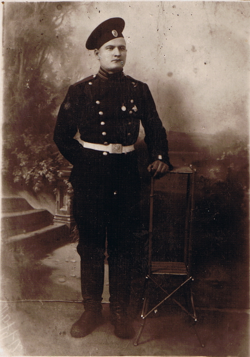 Призываемся в октябре, в городе Острове Псковской губернии, в запасной полк 3. Ново-Петергоф. Три месяца усиленно занимались подготовкой, и 1-го января 1915 года в эшелон, и на фронт, так как война началась по старому стилю 22-го июля. Направление на Варшаву, по октябрьской железной дороге. Едем на фронт через свою станцию. Забежим к родным попрощаться. Договорились по соседству молодёжь но денька два побудем, не больше. Номер эшелона списали мои, нагоним. Так и сделали. Через 2 дня провожали родные, и поехали пассажирским поездом до города Вильно (нынешний Вильнюс). Являемся к военному коменданту. Здоровый дядя генерал. Построил в 2-е шеренги солдат побольше сотни по ранжиру и опрашивает причину отставания. Врали всяко, кто как, но он (так его слова): «Не нюхал порох». Бежит его помощник. Раз – в правое ухо, и в левое. И аппетитно прикладывал только и ладонью, а счастливому – и всем кулаком. Первый бой начался войне, и нас направили на реку Вислу. Переезжали Иван-город. Рядом до города Островца, и влили нас в запасной полк. Пройдя мало времени переброска на Юго-Западный фронт Волочиск подволочиск (город Волочиск, Хмельницкая обл., Украина на левом берегу р. Збруч – напротив пгт Подволочиск, Тернопольская область), где местечко Микулиницы. На выбор направили в учебную команду. Дали дрессировки, и сразу же на отделение 2-е лычки. А на 1-й линии шли сильные бои, и нас на передовую. Вливают в 7-й пограничный заамурский пехотный полк, 7-я рота, 3-й взвод. 3-я дивизия, 9-я армия. Командир полка – Касович, командир армии – Личицкой или же Брусилов. Корпусного и дивизии что-то не помню. (С 09.08.1914 года по 18.10.1917 года генерал от инфантерии Лечицкий Платон Алексеевич был командующим 9-й армии Юго-Западного фронта. Генерал от кавалерии Брусилов Алексей Алексеевич с 17.03.1916 года по 21.05.1917 года был главнокомандующим войсками (армиями) Юго-Западного фронта). Принимая нас, командир полка, Касович, держа передовую километрах в семи от передовой окопной в деревне. Это в Галиции. Поздравлял и воодушевлял, что, мол: «Орлы, надеюсь на вас!». А та линия была более недели под огнём и переходила из рук в руки, где была побита не одна дивизия с обеих сторон. А подход был с нашей стороны под уклоном речки и впереди равнины и в редкую были кустарники, где валялось много окровавленных солдатских фуражек, гимнастёрок и сапог. Мы, как орлы не бывалые на линии боя, первый раз услышали в воздухе полёт артиллерийского снаряда, который разорвался в тылу. Это нам страх уже. Дела. Вечер, темно, идём крадко (тихо, крадёмся) и осторожно на окопы первой линии. Как вдруг под речку везли ужин на передовую кухни. И под речку по каменистому спуску от колёс получилась трескота. Подняли крик, что пулемёт везут. Кто что кричит, и разбежались орлы, что еле до утра собрали. Передовая была за леском, на опушке леса, где было очень мало солдат, которых предупреждали, что враг очень близко и силён, и наша линия пристрелена огнём, нельзя ничуть показываться. Но мы смелые. Вот один высунул голову, как его вмиг сбили сразу в голову насмерть. Нам очень стало страшно, что убивают насмерть. День отжили, подходит ночь. Я принял взвод. Ротный Петров: «Яковлев, выставляй секрет, а караул нельзя. В цепочку 4-е человека по фронту и три для связи с окопами. И проверяй через каждых 10 минут». Люди майные (от слова замаяться - устать) и были как-то ст