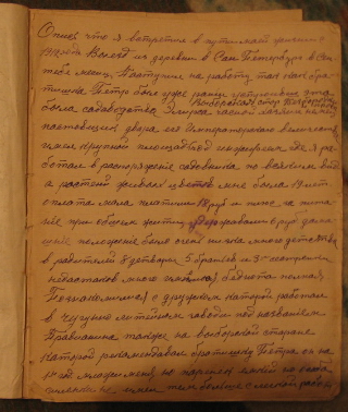 Мой край в моих находках. Я уже писал, что коп "по монетам" и коп "по истории своей семьи" для меня начался примерно одновременно, одно вытекало из другого. И вот в ходе своих обоюдных поисков я наткнулся на тоненькую школьную тетрадь своего прадеда по материнской линии. В этой тетради были его воспоминания, написанные им во время отдыха в санатории. Из неё я узнал, что прадед мой, родившийся на Псковщине, работал в Питере садовником и на заводе, участвовал в забастовках рабочих, воевал в 1-ю мировую под командованием Брусилова, и даже получил Георгиевский крест, который во время 2-й мировой (по словам моей бабушки) был обменян на сахарин. Образования у прадеда, я полагаю, большого не было, поэтому трудновато было разбирать некоторые слова. Местами не было не только запятых, но и точек. Но зато какой самобытный язык! Расшифровав записи прадеда, я отправил их по мылу родным в Питер и Эстонию. Теперь представляю их Вам, коллеги. В скобках - мои комментарии и современные названия мест, остальное - авторская стилистика. Памяти прадеда, и всем интересующимся историей своей семьи и своей родины посвящаю... ЯКОВЛЕВ АЛЕКСЕЙ ЯКОВЛЕВИЧ Родился 14 марта 1893 года В деревне Луговицы Палкинского района Псковской области Воспоминания про военное время, про события местечка Окницы Станиславской (ныне Ивано-Франковской) области. Написаны15 февраля 1955 года – 9 февраля 1963 года. Опись что я встретил в пути моей жизни с 1912 года. ГЛАВА ПЕРВАЯ Выезд из деревни в Санкт – Петербург в сентябре месяце. Поступил на работу, так как братишка Петро был уже ранее устроивши. Это было частное садоводство на Выборгской стороне, Безбородкин проспект. Хозяин – немец Элирс, поставщик двора его Императорского величества – имел большую площадь под оранжереями, где я работал в распоряжении садовника по всяким видам растений, живых цветов. Мне было 19 лет. Оплата мала. Платили 18 рублей и плюс за питание при общем житии, удерживали 6 рублей. Домашнее положение было очень низка, много детства. У родителей 8 детворы: 5 братьев и 3 сестрёнки. Недостатков много имелось, беднота полная. Познакомился с дружком, который работал в чугунолитейном заводе под названием Правианина, также на Выборгской стороне, который рекомендовал братишку Петра. Он на 1 год младше меня, но паренёк ёмкий, он особо силёнки не имел, тем больше с лёгкой работе. На заводе в то время техники не было: тачка, носилки, вагонетка, лом, лопата. Никакой техники безопасности не имели и рабочих ни во что не считали – за воротами десятки безработных стояли. Пошёл Пётр первый день в завод работать не взяв расчёта в литейный цех в бригаду чернорабочих. Бригадир Артюха Витебский подобрал ему напарника сильного и носилки в руки, носить отливки на обточку в другой цех, хотя это было и не обязательно через силу, но в связи так как бы стереть товарища, а взять из-за ворот своего друга, который без работы. Приходит братишка отработав день, говорит: «Нет, Алексей, хороший заработок, но я не могу». Ну, ладно, думаю, схожу попробую. Он рассказал какой Артюха, какая проходная, его за один день бригадир и не усвоил. Являюся я новенький пришёл есть Яковлев. Он сомневается, как будто бы не тот? Ну ладно, вот тебе напарник - мужественный парень, носилки – убирать отливные детали на обработку в другой цех. Тоже такая картина – меня изжить. Тянуся, но тяжело. До о