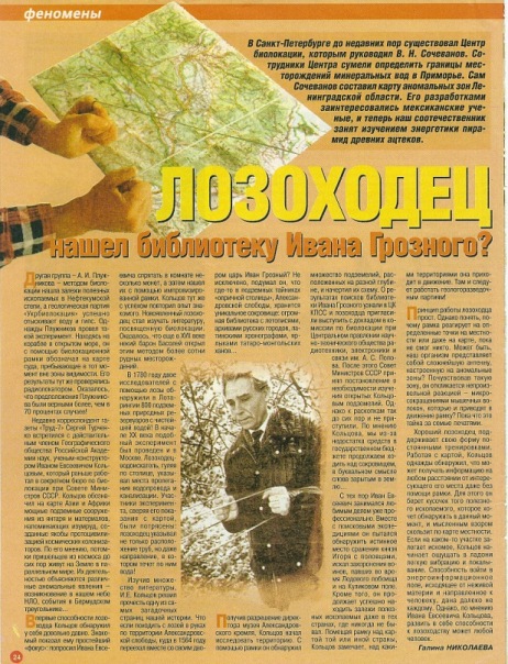 Давно и достаточно успешно использую Г-образную рамочку из меди для нахождения старых фундаментов на селищах. Кроме этого спокойно нахожу подземные ручьи для определения положения и глубины будущих колодцев. За 20 -летнюю практику определил положение более 50 колодцев и не разу не ошибся. Что касается поиска фундаментов, то эффективность примерно 70% для многократно распаханного средневековья и выше - для 18-20 века. Кроме того реально определить крупные железные объекты типа метал. колесного обода от телеги или зарытую современную помойку из метал. банок. Более мелкие предметы найти невозможно. Утверждаю, как более менее неплохой специалист по биолокации, проходил практику в экспериментальной группе в 1989 году при Академии Наук. Реальную работу в той или иной степени может освоить любой, но результат будет зависеть от индивидуальных особенностей организма, времени суток, биоритмов оператора и правильного настроя на задачу. С уважением.