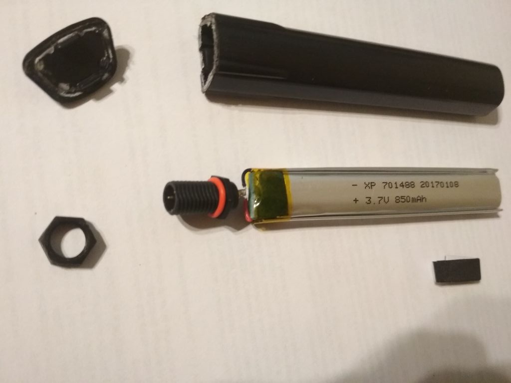 Резиночка внутри корпуса на резьбовом соединении, для гидрогерметичности. Любопытно что можно вывести пару проводков и в верхнюю штангу засунуть в поролоне аккум вдвое большей ёмкости. Тогда в связке блок+уши Деус+проводные уши+катушка вся конструкция будет попеременно держать заряд до 8ми дней. Если куда с палаткой убредать далеко - пригодится)