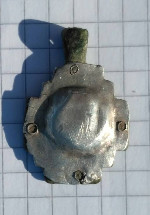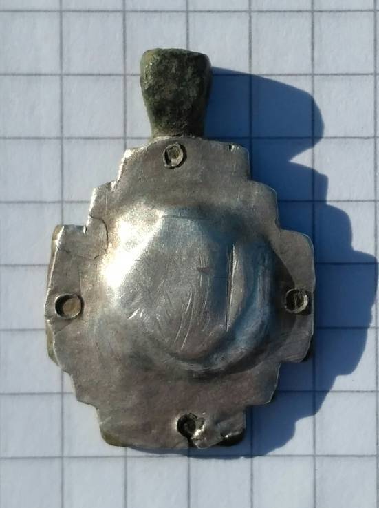 Он вроде как реликварий сделан (на основе энколпа?), а на серебряшке ещё и латка как-буд то бы. |