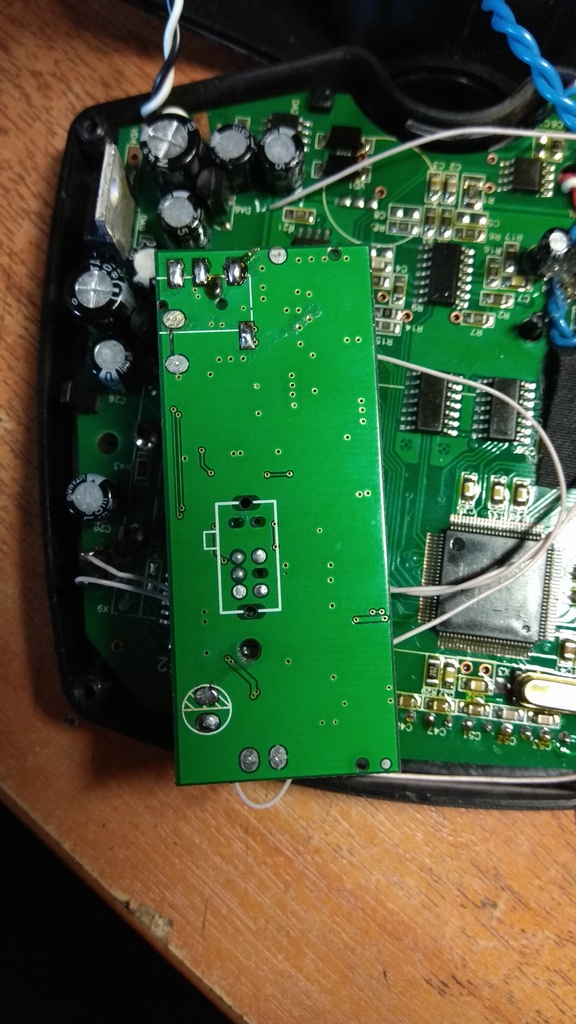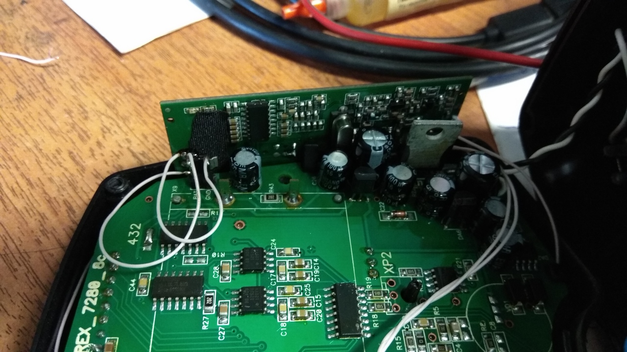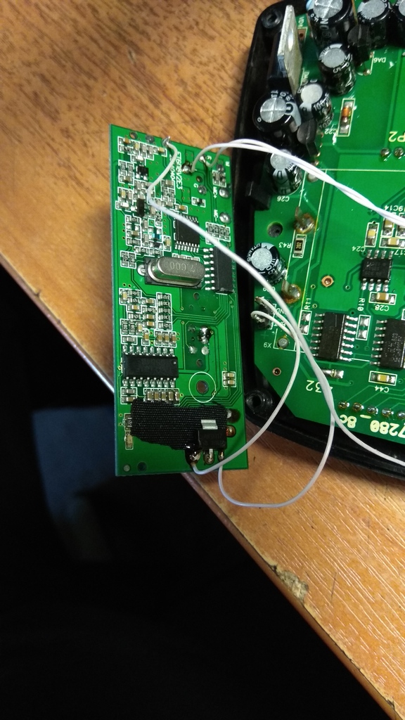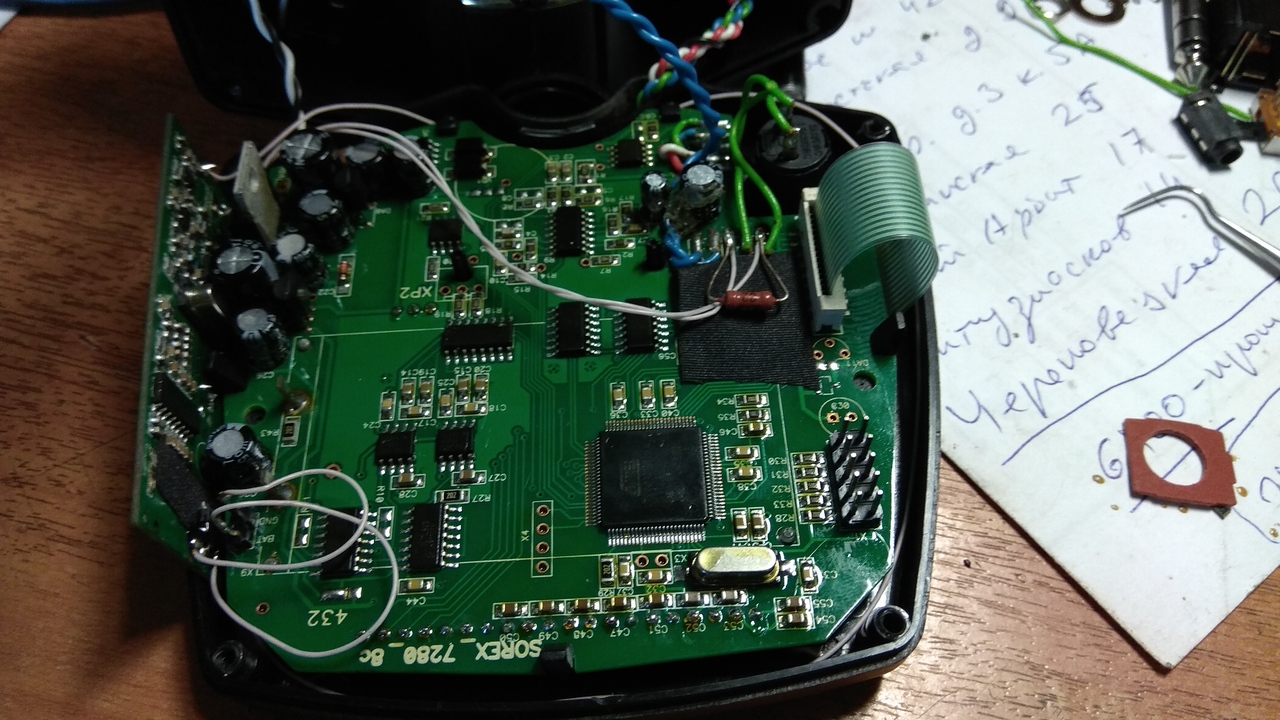 Необходимые детали для доработки: -стабилизатор на 3.3в LM1117 (припаял прямо к плате передатчика) -кнопка для отключения динамика (вместо гнезда для наушников) -резистор 120 Ом Питание можно подключить от общего выключателя, можно найти кнопку с двумя группами контактов, тогда с динамиком будет отключаться и передатчик. Но я пока такой не нашел, в будущем сделаю. Резистор подключен параллельно правому и левому каналам, сигнальная масса не используется. Платка передатчика хорошо установилась вдоль стенки прибора. И да, перед установкой пришлось выпаять все детали с одной стороны платы, видно на фото. А там конденсатор, переключатель и разъем для наушников. Микрофон тоже выбросил. Допаял антенну, кусок провода примерно 15 см для лучшей работы передатчика. Как то так. Вложенные эскизы изображений |