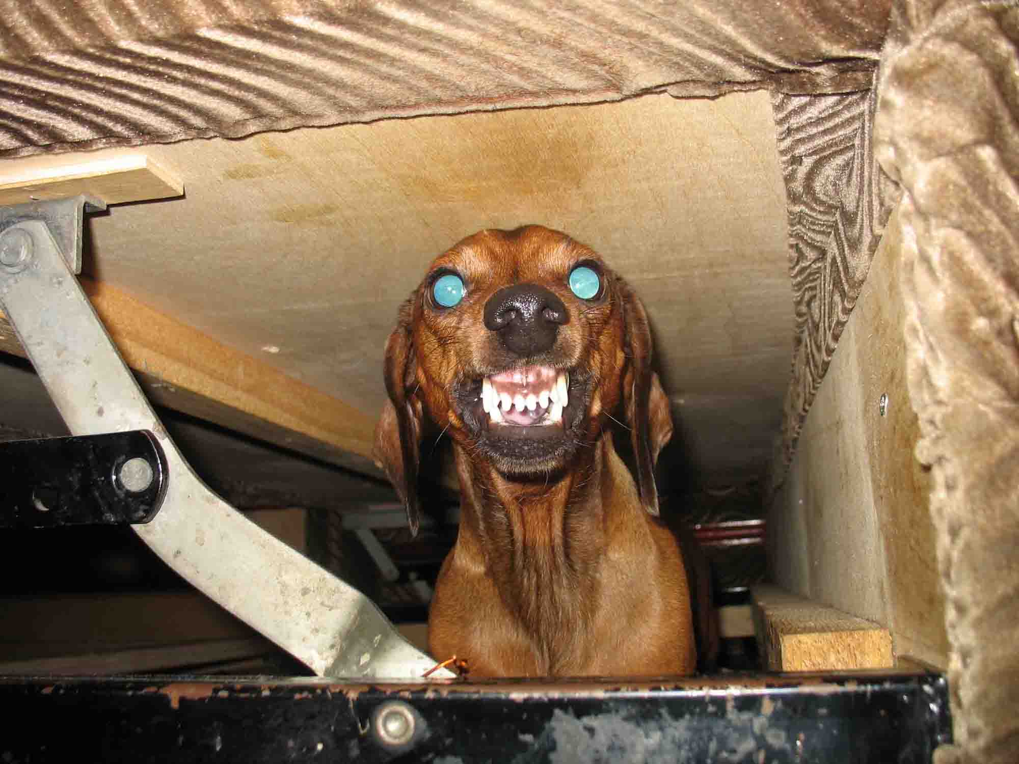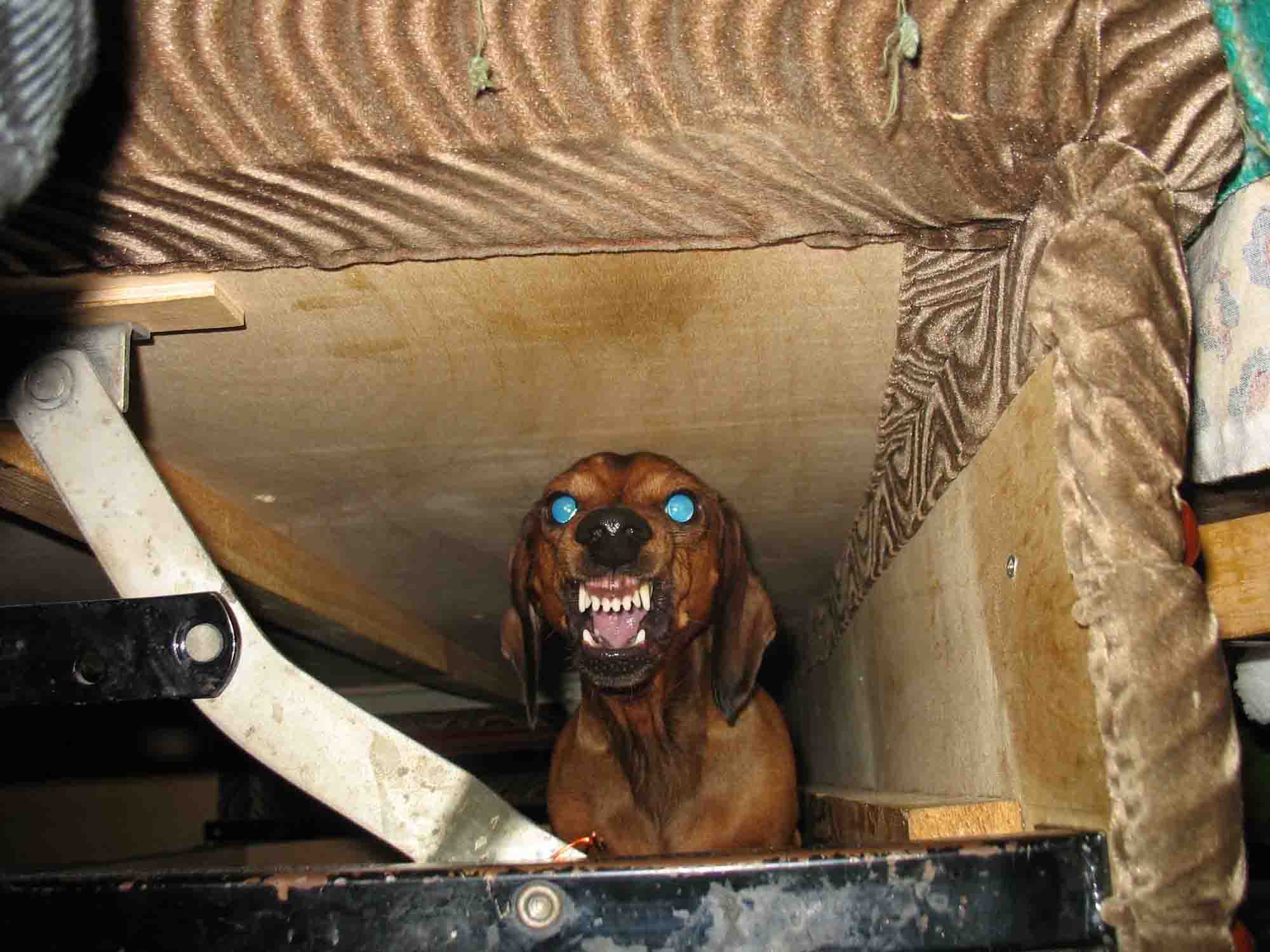 Моя собака всегда сидит под диваном и поджидает когда я пойду чтоб схватить за штанину.