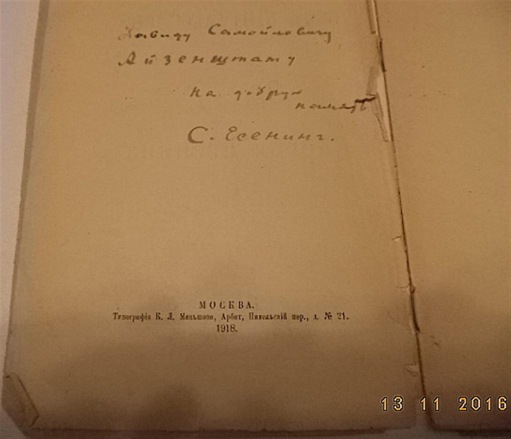 Есенин подарил две свои книги Айзенштату с дарственными надписями и обе у моих знакомых, которые являются его потомками. Дополнительные фото. С уважением, Алексей. Вложенные эскизы изображений -------------------- Плюсомёт не работает.