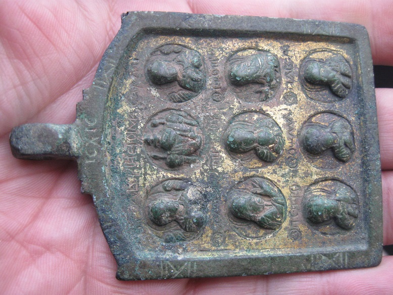 QUOTE(sanek-c @ Nov 21 2016, 08:06) Какую такую? С крестом - "Виноградная лоза"? Если верить Гнутовой, данный крест изображался преимущественно во 2 пол. 12 - 1 пол. 13 в.в. Изображения креста "Виноградная лоза" известны на новгородских каменных иконках XIV в. Для датировки данной иконки важно изображение Этимасии (престола уготованного) в центре верхнего ряда (по новым фото прочитал имя Архангела слева - Гавриил). На нательных крестах изображение Этимасии появляется не ранее середины XIV века и широко распространяется в XV в. Граненое оглавие данной иконки на подножии сложной формы тоже может свидетельствовать о ее возрасте не ранее XIV в. Выступы на верхних углах и выступающее вперед оглавие с лицевой стороны, возможно, свидетельствуют, что прототипом мог быть средник складня. Сообщение отредактировано boratinka: Nov 21 2016, 09:39 -------------------- Куплю каменные сверленые топоры и