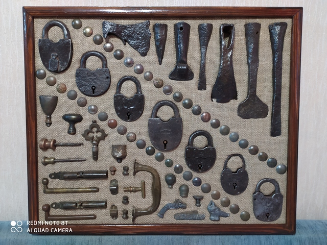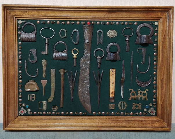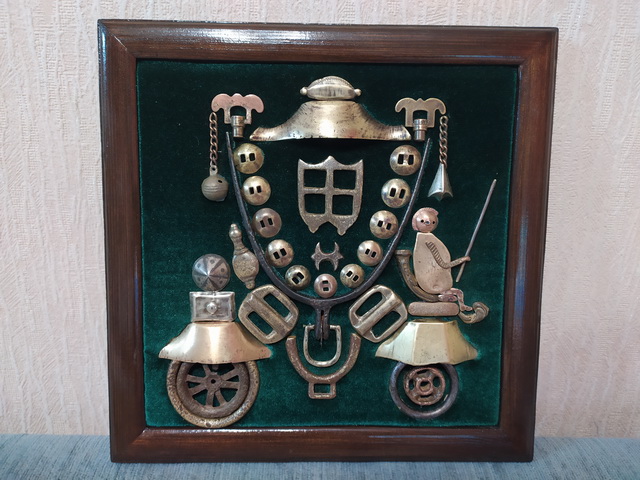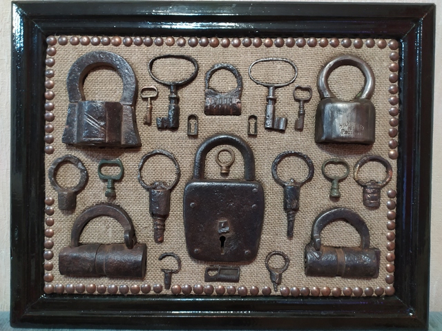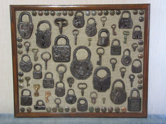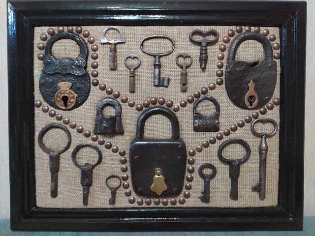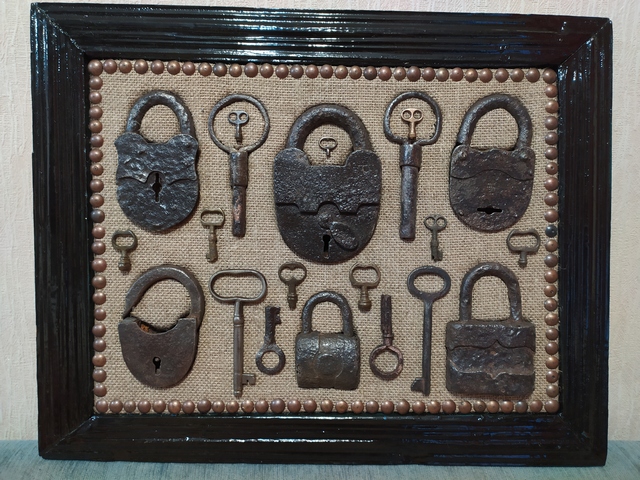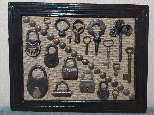 Лот №254: Панно с замками по диагонали и ключами по углам, размером 47 на 35 см, цена 3000+ пересыл ПРОДАНО