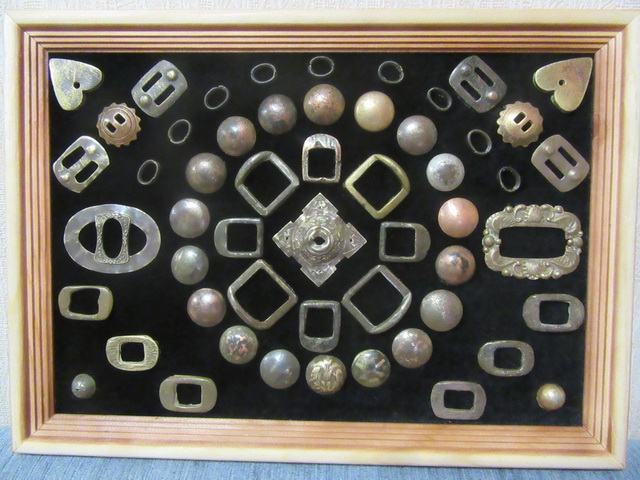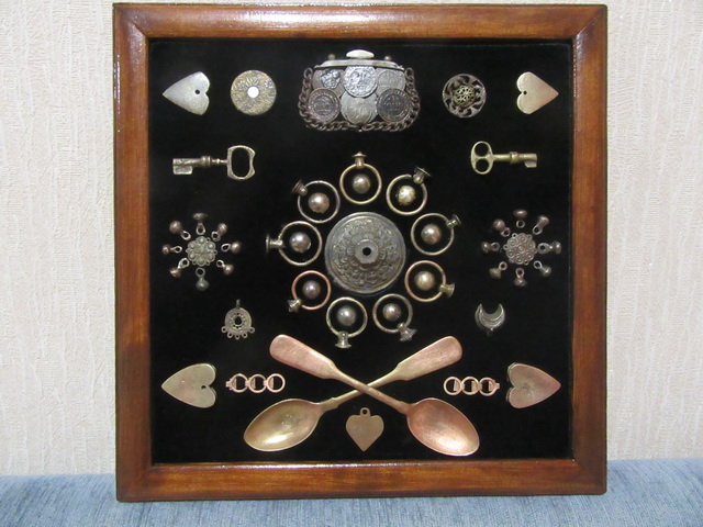 Лот №85: Панно с "травмированными" пуговицами по углам и из фрагментов изделий в центре по диагонали, размер 25 на 25 см, ПРОДАНО Лот №86: Панно из пряжек, конинок, пуговиц, размер 25 на 25 см. ПРОДАНО Сообщение отредактировано zemlyanin: Apr 22 2019, 11:48 Вложенные эскизы изображений |