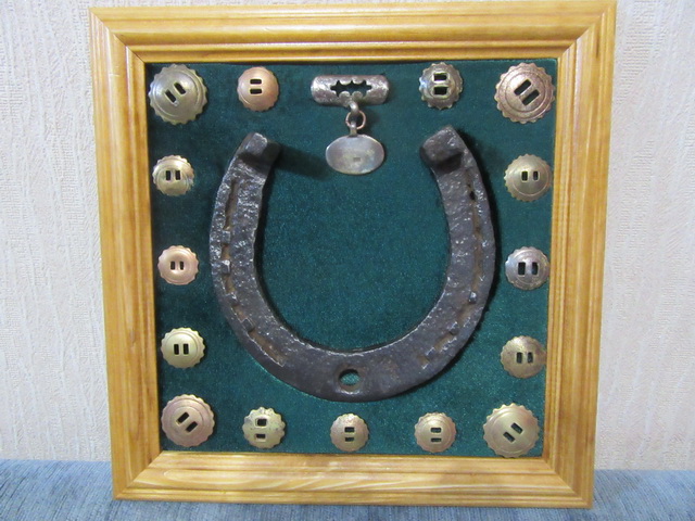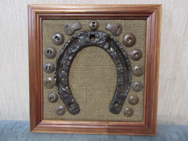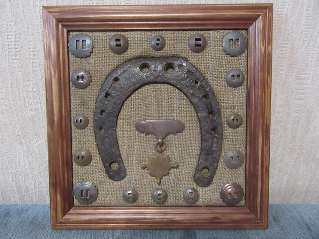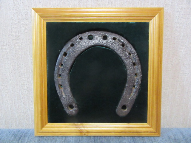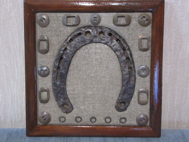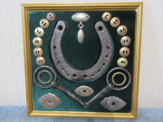 Лот № 148: панно с подковой на бархате, размер 25 на 25 см, ПРОДАНО