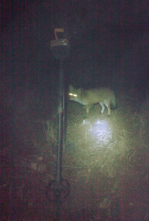 А я уже два раза выезжал, понравилось, темнеет рано, вот и решил переломаться между выхами, изредка голову подымаю и просвечиваю местность, в очередной подъём высветились глаза, думал кошак, позвал его, кыс-кыс, подходит зверюга, оказалась лиса, подошла на два метра, совсем не пугливая, кружила вокруг, как собака, около часа за мной ходила, даже фото на телефон сделал.