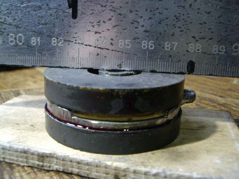 Заинтересовавшись вашей поделкой, таки нашел па закромам один магнитик от магнетрона микроволновки. Что-то он и не такой уж сильный, как хотелка навыдумывала