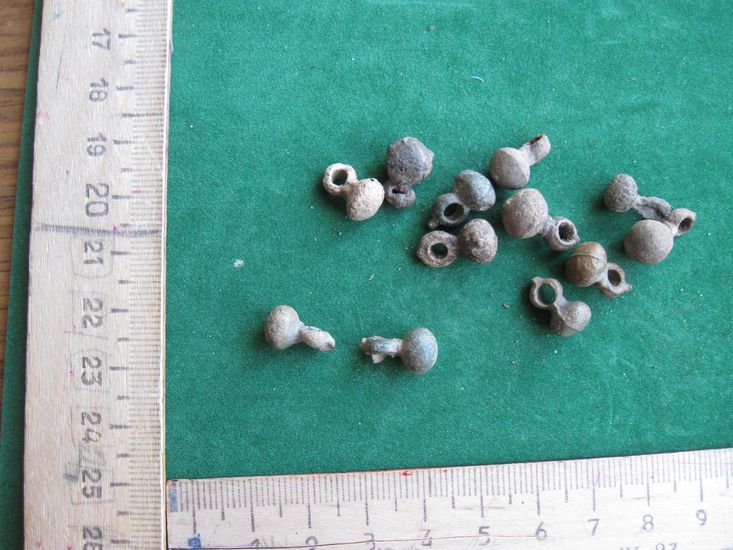 Приветствую, Коллеги. Интересуют целые оловянные или серебряные пуговки-гирьки.