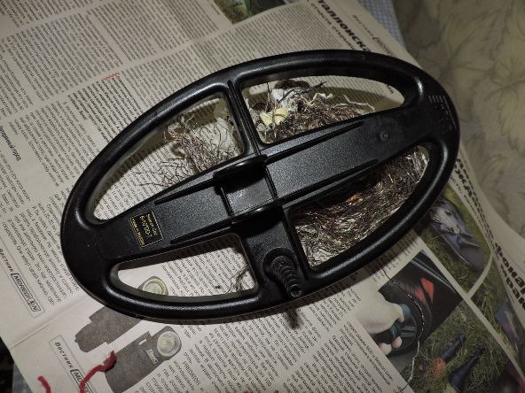 Когда высохнет экран нужно проверить сопротивление.Экран должен быть не более 2-3к между проводком куда припаиваем кабель и крайними точками экрана.При необходимости нужно нанести еще слой или два графита.Затем в корпус вклеиваю дистанционные прокладки-квадратики из пенопласта толщиной 1мм.Кладем обмотку в корпус и подсоединяем к кабелю и проверяем фазировку для этого нужно подключать к мд и на малом усилении проверить чтобы правильно работал пинпоинт.Укладываем провода на свое место проверим еще раз балансировку провода все делаем короткими без запаса кроме одного провода с передающей обмотки на ней запас достаточный для точной балансировки и если все мы делали правильно то катушка должна балансироваться одним витком из провода длиной примерно 10см.Сверху обмотки тоже приклеиваем дистанционные прокладочки.Все .Датчик готов к дальнейшей заливке пеной.