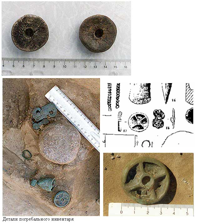 Фролов_МОГИЛЬНИКИ РАННЕГО ЖЕЛЕЗНОГО ВЕКА ФИРСОВСКОГО АРХЕОЛОГИЧЕСКОГО МИКРОРАЙОНА К сожалению в статье не указано назначение колёсика, но там точно нет конской сбруи. Пряслица, может быть, хотя там присутствуют обычные пряслица. Датировка 4-5 вв до н.э. Вот фото. С уваж. http://new.hist.asu.ru/skif/pub/skep/frolsh.html - сама статья http://new.hist.asu.ru/skif/fotos/fotos2.html - фото Вложенные эскизы изображений |