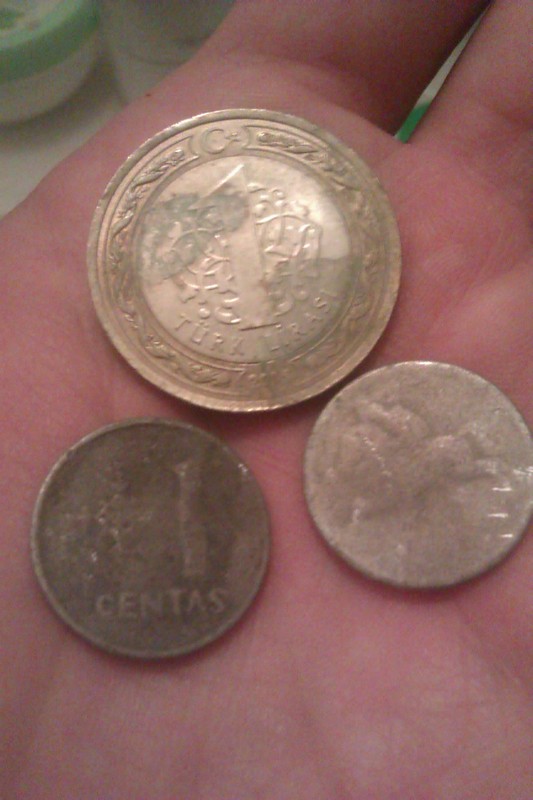 В турецком городе Кемер одна галька, все пляжи отельные, где песок - пляжи от баров, народу всегда тьма. Ранним утром, наверное, никого, но, я пока не могу себя заставить так рано встать. +обязательно нужно разговаривать с владельцем бара..ну, тут об этом уже писали. Но. Есть дики пляжи. Они дальше от города и там почти никого, вечером. Сегодня полчаса там походил. 1 лира современная и два латвийских цента 1991-го года из алюминия(!)..не знал, что такие монеты были. В общем, там, наверное и буду ходить. Извините за качество фото, света уже нет тут. Вложенные эскизы изображений |