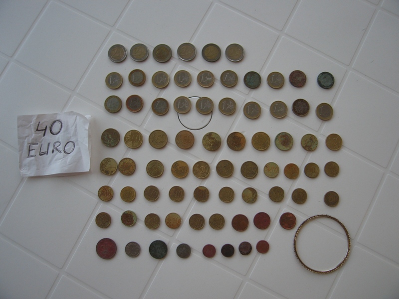 Сегодня утром вернулся с отпуска. Отдыхал на Тенерифе, (Канары, Испания). Брал с собой АСЕ250. Даю краткий отчет о местном пляжном копе. Жил на юге в районе Los Cristianos. Ближайший довольно большой пляж назывался Las Vistas. Копал в основном на нем. Копал в утренние и вечерние часы когда народа уходил. По всему пляжу стоят пластмассовые шезлонги которые не убираются на ночь. Утром в районе 8-00 часов на пляж выезжает машина чистящая песок. Ездит она только по дорожкам вдоль шезлонгов. Мне особенно не мешала. Свой пляжный скуб не брал по причине перевеса багажа. Копал песочек руками. По этой же причине реагировал только на монетные сигналы. Остальные игнорировал. За 8 выходов набрал 40 евро монетами плюс несколько английских пенсов, 5 старых испанских песет и еще какую-то европейскую мелочь. Был также найден металлический браслет, бижутерия. Коллег по диагнозу замечено не было. Копал без опаски, народ реагирует позитивно или игнорирует. На вопросы местного испанского старика отвечал "бускандо ди монетос" (ищу монеты) и "руссо туристо". На что получил "здравствуй, товарисч" и улыбку. Вообщем копать можно и нужно. К следующему сезону планирую обзавестись мечом и искать в воде. Народу с золотыми цацками на пляже много. Найденная евромелочь была удачно инвестирована в последний перед отъездом ужин в ресторане с паэльей, морскими деликатесами и бутылкой вина на двоих с моей прекрасной спутницей. Вложенные эскизы изображений |