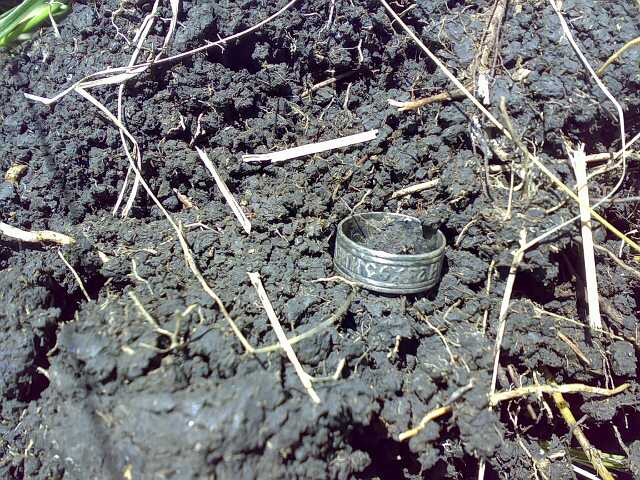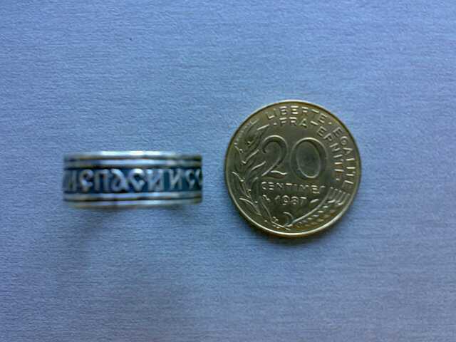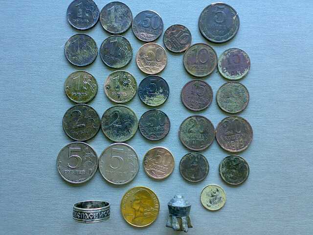Всем доброго время суток!Сегодня с сыном прогулялись у подножья горы,рядом стоит общежитие иностранных студентов.Частенько видел как они устраивают пикники,вот и выскочила из земли заморская монетка.Сначала не понял что это,никогда такие не находил.В некоторых местах трава была по пояс,вот именно там я и нашел колечко "Спаси и сохрани"серебро.Я бы с удовольствием вернул бы его хозяину,если бы знал кто он.Сыну больше понравилась охотничья пуля.