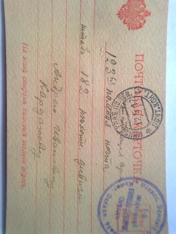 QUOTE(liperator @ May 24 2012, 01:06) Все ушли в поля? Да это так, да и жарко сейчас под крышей, плюс конкуренция и "всё уже украдено до нас!" QUOTE(livsi @ May 24 2012, 12:24) Ну и малая часть помытого. Марки 200 с лишним, большая часть Россия. Письмо с фронта 1917г. Рецепт на очки, сигнатуры. Почтовая карточка: 'шашлык из немецких тушь'. Остальное пока не мыл. Это находки из Москвы? |