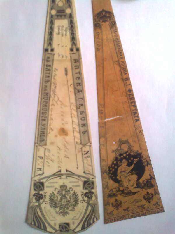 Еще раз огромное спасибо автору темы!Воодушевленный Вами-8часов внимательно смотрел подполья,полуподвалы,1 этаж и чердак 4 квартирного дома 19 века постройки.под снос .Порадовал чердак-несмотря на копки (конкуренты,блин,копали ямки,а не снимали засыпку послойно и порвали все бумажное)--был нетронутый кусок 2 на 2 метра у входа на чердак.Итог-бутылочки,фото,счета,несколько писем,гербовые марки---и целое,похоже-письмо с фронта 1916 года..маска спрорезями для глаз с остатками вуали,кружевной воротник. почти все до 1817 года.Беру на вооружение Ваш опыт в реставрации бумаги -оставляю все до зимы- тогда и будут фото...Плотная марлевая повязка.. Пылища ..
