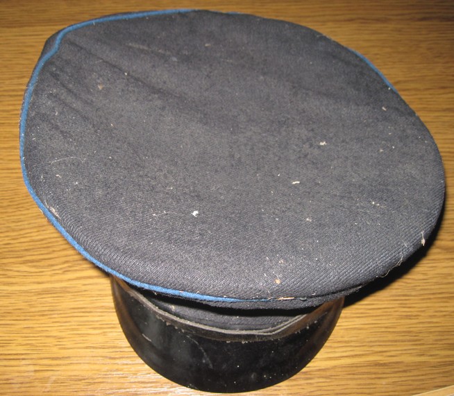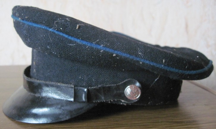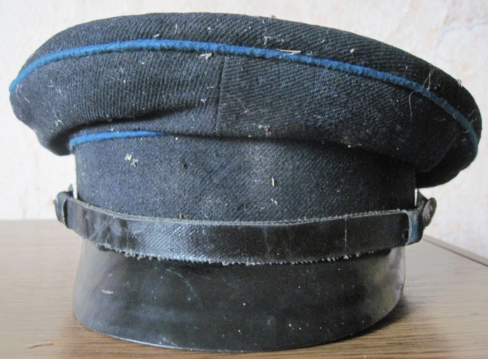 Сам нашёл: фуражка работников железнодорожного транспорта образца 1943 года. Синяя выпушка говорит о том, что она принадлежала работнику из числа локомотивщиков и вагонников.