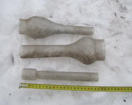 Вопрос корифеям чердачного поиска. Попалась интересная стекляшка, полагаю что от лампы. Возможно ошибаюсь. На фото нижняя, стекла от керосиновых ламп выложил для масштаба. Подскажите от чего?