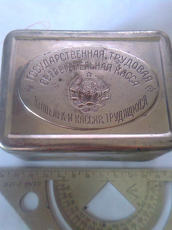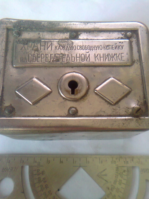 Копилка времён НЭпа - 20-е годы ХХ века, были разных форм, но с похожими надписями. На втором фото видны подпружиненные зубцы из проволоки внутри копилки вокруг отверстия - это защита от пронырливых отпрысков, любящих выуживать монеты через отверстие в отсутствии хозяина копилки.