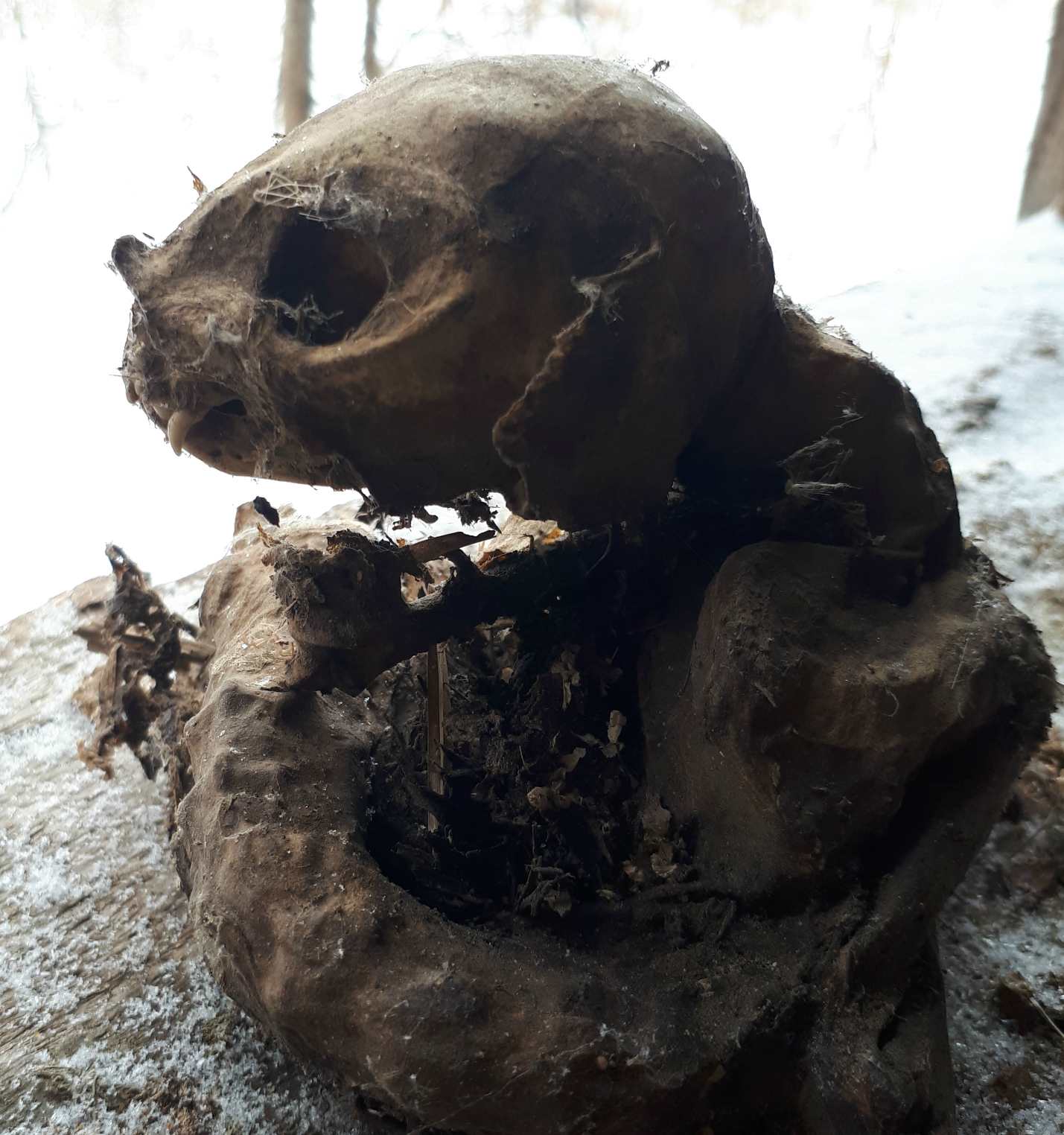 Помню лет пять назад напарник обследовал чердак, а мы в комнате ниже были. Когда ему хватило ума скинуть в люк на нас сверху подобную засушенную "чупакабру", то тоже вся жизнь перед глазами пролетела...