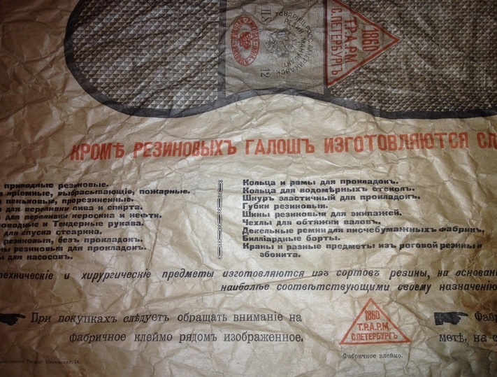 Есть только подошва от дореволюционной галоши с клеймами и плакат 50см Х 68см.