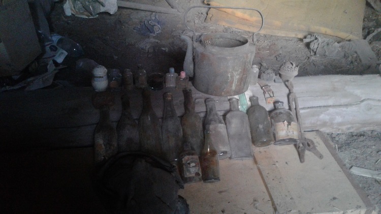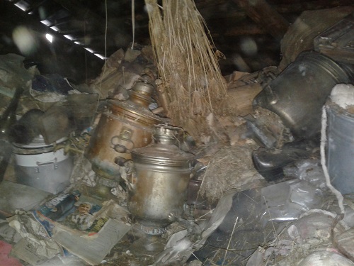 Что характерно, этот чердак не вызвал сначала интереса. Он весь был завален сеном по пояс, а где и повыше. Странно, подумали мы, что сеновал устроили прямо в доме. Но потом копнули в сене и нашли какие-то кульки, а потом и тюки с материей. Скорее всего, хозяева раньше работали на местной ткацкой фабрике и воровали оттуда не по-детски. Всё это складывали на чердаке, а сверху уже, видимо, от участкового прикрывали сеном. Поразило также просто огромное количество пустых бутылок! В общем, перегребая всё это добро, мы нашли 2 царских и 1 советский самовар, медную иконку, трамвайный билет 1933 года, разную посуду 20-30-х годов, кавалерийскую будёновку образца 1936 года, много журналов 60-х годов, дореволюционную коробочку от халвы. А вот до засыпки добрались только в одном месте - нашли билет в 100 р. 1915 г. Возле лестницы на чердак, в куче банок нашли медный солдатский котелок образца 1882 года(использовался под краску) и под полами бутылку "Новой Баварии". Очень порадовала находка за печкой - штык от австрийской винтовки Маннлихер М1895, ещё с имперским клеймом Австро-Венгрии. Вложенные эскизы изображений |