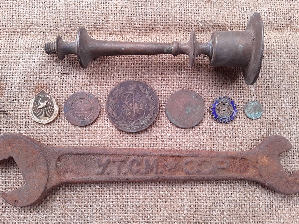 На этот раз 3 имперских монеты и часть латунного советского знака. Плюс ещё гаечный ключ, сделанный в Одессе. Дореволюционный серп с клеймом заставил задуматься о "неправильности" серпа на Гербе СССР 1923 года. Вполне себе нормальный артельный серп с утолщением ручки сверху. В руке лежит удобно и косить тоже удобно. Косит, кстати, "на Ура!", как и 100 лет назад Вложенные эскизы изображений |