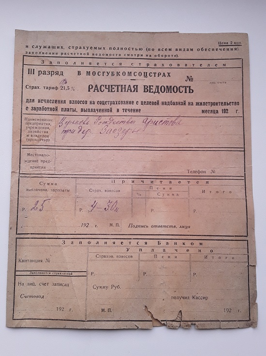 QUOTE(топыч @ Sep 21 2020, 07:45) Штык-молодец, отличные находки! А можно отдельное фото страховой квитанции за 2 коп. На первом фото на нем лежит книжка для отпуска товара. Если еще что то есть по страхованию, так же прошу отдельные фото. Можно в личку. Удачи! Ведомость, как я понял, оформлялась на работника при церкви. А может, и на самого батюшку с его скромным нетрудовым доходом в 25 рублей. Думаю, если б водились черти в пруду рядом с той церковью, то и с них бы Советская власть взимала бы взносы на соцстрахование с целевой надбавкой на жилстроительство Вложенные эскизы изображений |