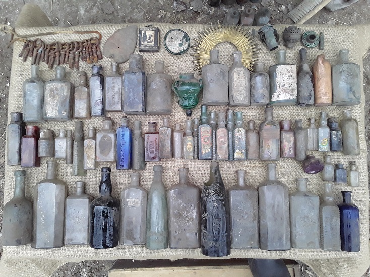 По-моему, в этой теме прочитал про похожий случай. Когда входа на чердак нигде не было и мужик попросил то ли экскаваторщика, то ли ещё кого на технике, чтобы его наверх подняли. Чердаком этим, братцы, активно не пользовались очень много лет. Видно, что трубы меняли от печек, а так только одно старьё было - царские и раннесоветские пузырьки, картузы тех же лет, тряпьё, железки всякие. Современных вещей, даже тетрадей или газет на нём не было.
