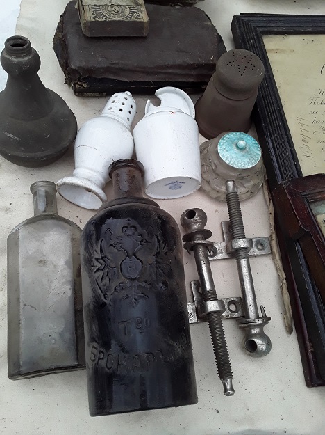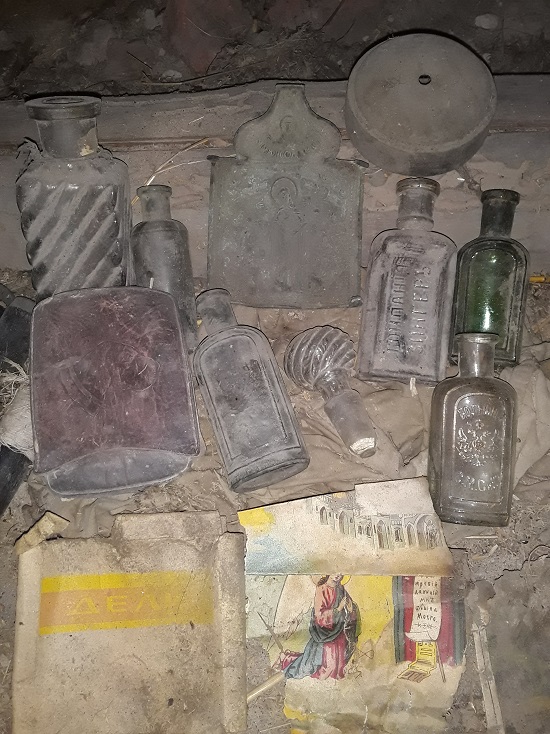 Центальная часть складня - укор моей лени, опять не взял пинпойнтер! Думаю, с ним находок было бы побольше. Немножко прояснилось для меня обилие пузырьков на многих чердаках - на одном сегодняшнем больничном пузырьке надпись - подлежит возвращению! То есть, их при царе сдавали, как и мы стеклотару в советское время! Вложенные эскизы изображений |