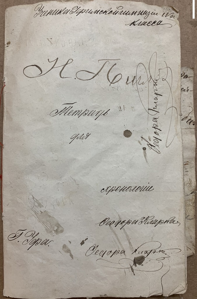 В сентябре 2022 г. на одном из пройденных чердаков, вынул из подсыпки интереснейшую тетрадь (по познавательной и исторической части). Она примерно 1870-80 х годов, по хронологии (видимо исторические даты преподавались отдельно от истории). Принадлежала Федору Кларку из большого семейства.