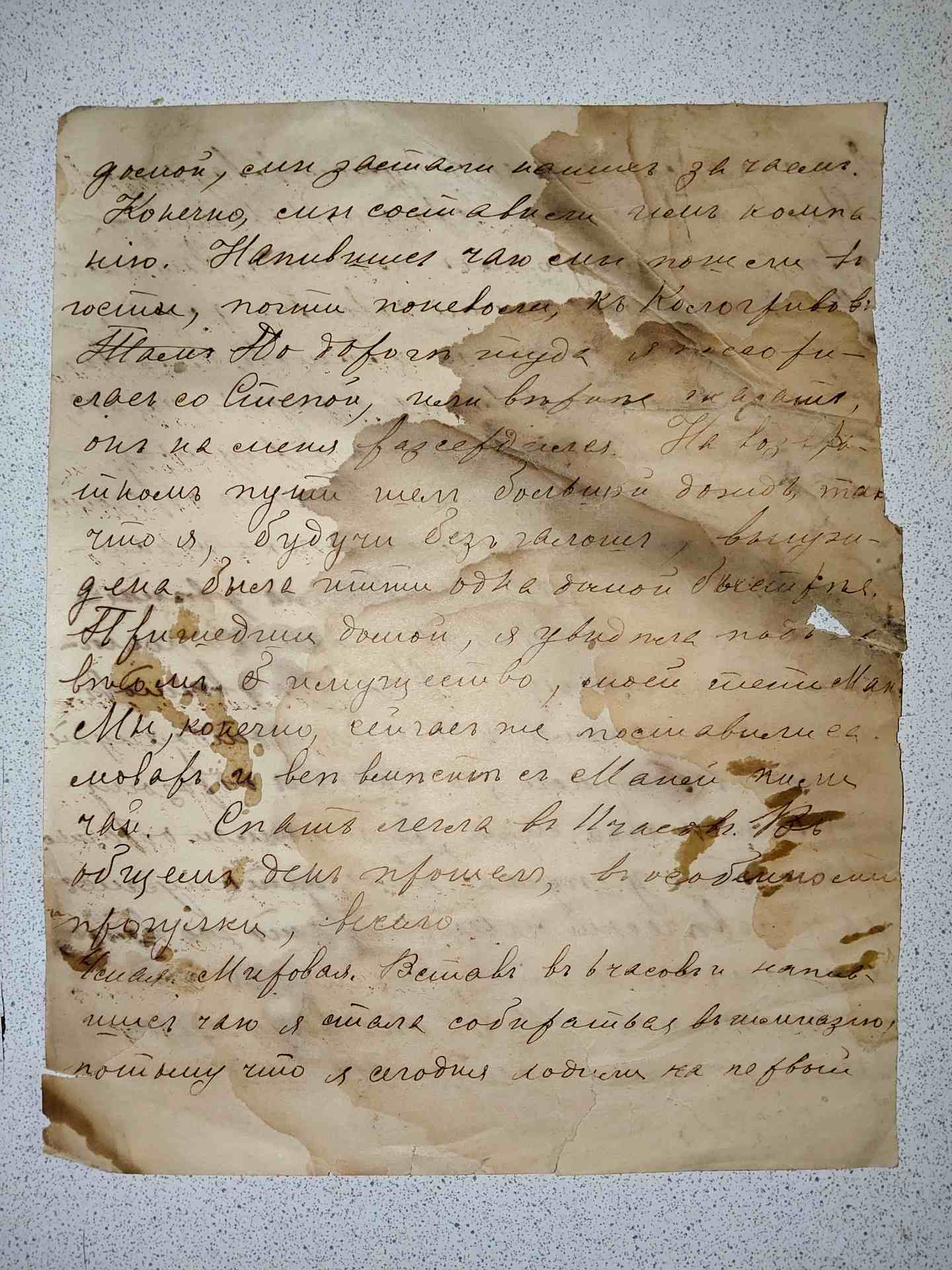Не в обиду Вам, я немного поправил недостающие фрагменты текста, что удалось прочитать. Очень интересно разбирать рукописные дореволюционные записи. Мне очень помог опыт чтения Метрических книг при составлении родословной. С Уважением. QUOTE(pavelstatnik @ Mar 9 2026, 07:09) У нас еще не все было прибрано в кухне, как к нам пришли гости чай пить. Они просидели до 4 часов вечера. После них я опять все... по хозяйству управлялась, итак было до 9 часов. В 9 часов вышла на улицу и просидела только полчаса, потому что была в одной шали. В 10 часов легла спать. Так прошёл день 6 мая, не принеся в мой дневник ничего интересного. 7 мая встала в 7 часов я стала печь пирожки. Начали пить чай за котором мы много говорили о астрономах, вообще разговор был ученым. Просидев таким образом довольно долго за чаем, мы услышали звон и я побежала зажигать лампады, потому что думала обедня, оказалось, что это вовсе перезвон. ..... немного мама стала собираться к обедне, потому что мне было нельзя. делать двойной.... Пока наши были у обедни, я оделась и приготовила им.... разогрела обед. Когда они пришли то стали закусывать, я поела и ушла за ворота. Меня долго звал Степа за реку, но меня не отпускали в обласок. Погода плохая стояла, ни снег ни дождь, так что пришлось весь день быть дома. Хотя я уже совсем собралась плыть за реку с папой и собралась совсем- одела шарф, а мама велела одеть платок, а я не захотела, случилась маленькая катастрофа, последствием чего я и осталась дома. Выйдя за ворота, я встретила там много народу, но они вскоре все ушли встречать представителя китайцев, и я осталась одна. В это время шёл мимо Ивсь Ми.... К...... Сообщение отредактировано КорАл Ник: Mar 9 2026, 10:06 -------------------- старый ник КорАНик