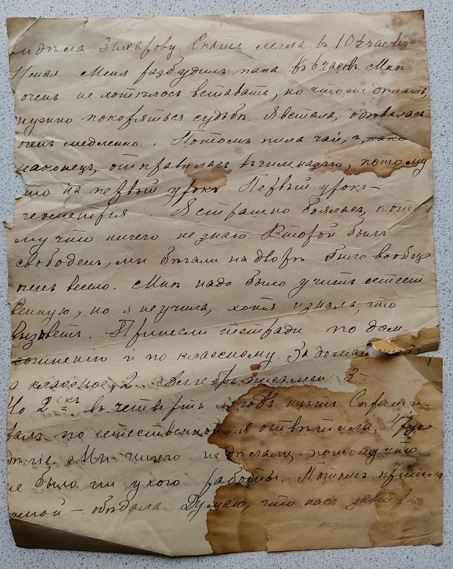 Видела Захарову, спать легла в полодинацатого вечера.