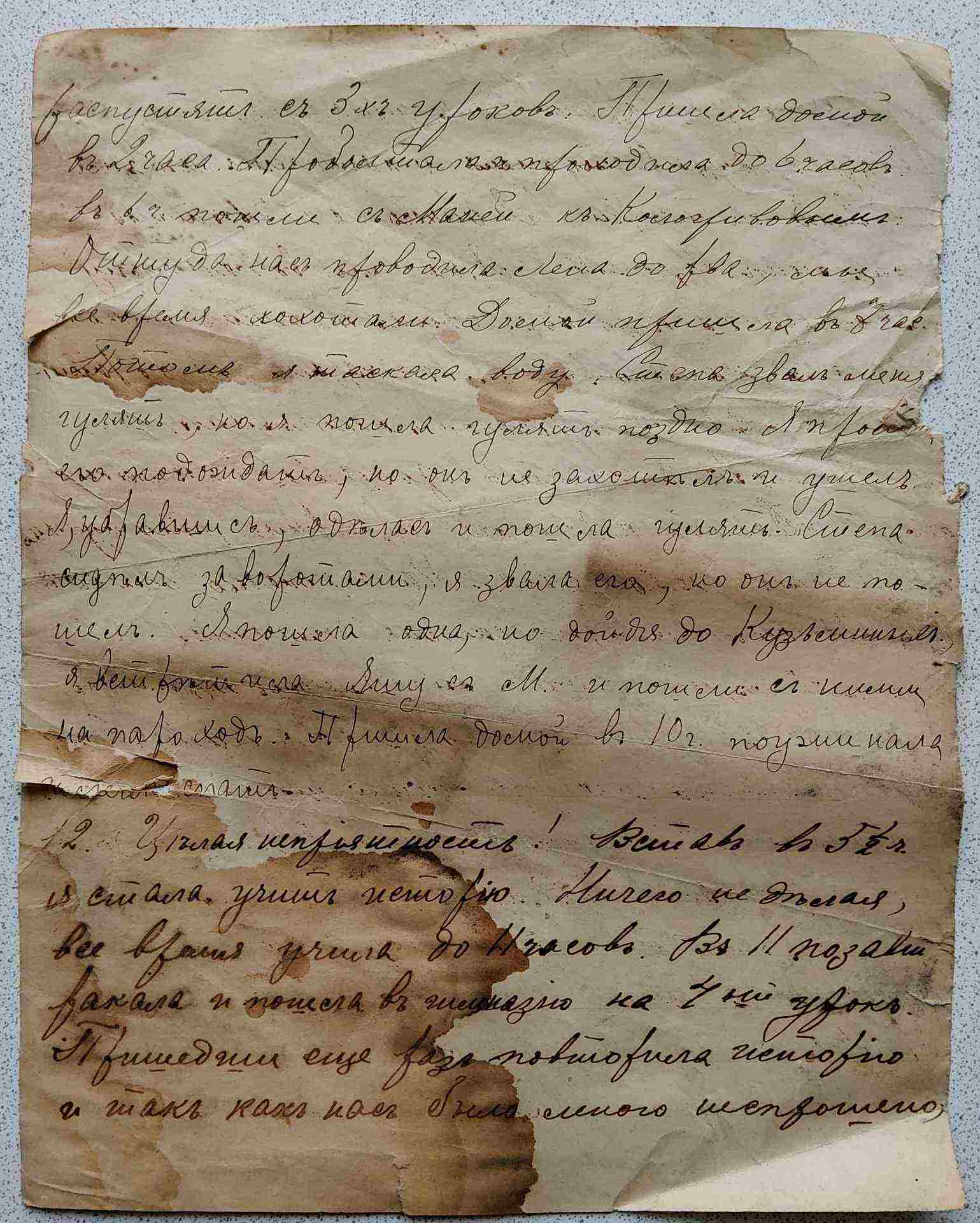 11 МАЯ. Меня разбудил папа в 6 часов. Мне очень не хотелось вставать, но что делать нужно покоряться судьбе. Я встала, одевалась очень медленно. Потом пила чай, наконец отправилась в гимназию, потому что на первый урок. Первый урок - геометрия. Я страшно боялась, потому что ничего не знаю. Второй был свободен, мы бегали на дворе было вообще очень весело. Мне надо было учить естественную, но я не учила, хотя и знала, что вызовет. Принести тетради по дом. сочинению и по классному. За домашнее соч. классное 2 алгебра письменно 3 но 2-ек в четверти и за год нет. Спрашивал по естественной, я ответила. 4 - рукоделие Мы ничего не делали, потому что не было ни у кого работы. Потом пришла домой - обедала. Думаю, что нас затра распустят с 3х уроков. Пришла домой в два часа, провалялась и проходила до 6 часов. В 6 ч. пошли с Мамой к Кологривовым. Оттуда нас проводила Лена до ..., мы все время хахатали. Домой пришла в 7 часов. Потом я тоскала воду. Стёпа звал меня гулять, но я пошла гулять поздно. Я просила его подождать, но он не захотел и ушёл. Я, убралась, оделась и пошла гулять. Стёпа сидел за воротами, я звала его, но он не пошёл. Я пошла одна, но дойдя до Кузьминых, я встретила Яшу с М. и пошли с ними на пароход. Пришла домой в 10 ч. поужинали и легла спать. 12. Целая неприятность! Встав в пол шестого я стала учить историю, ничего не делая, всё время учила до 11 часов. В 11 позавтракала и пошла в гимназию, на 4 урок. Пришедши ещё раз повторила историю и так как нас было много не спрошено, Сообщение отредактировано pavelstatnik: Mar 16 2026, 13:00 |