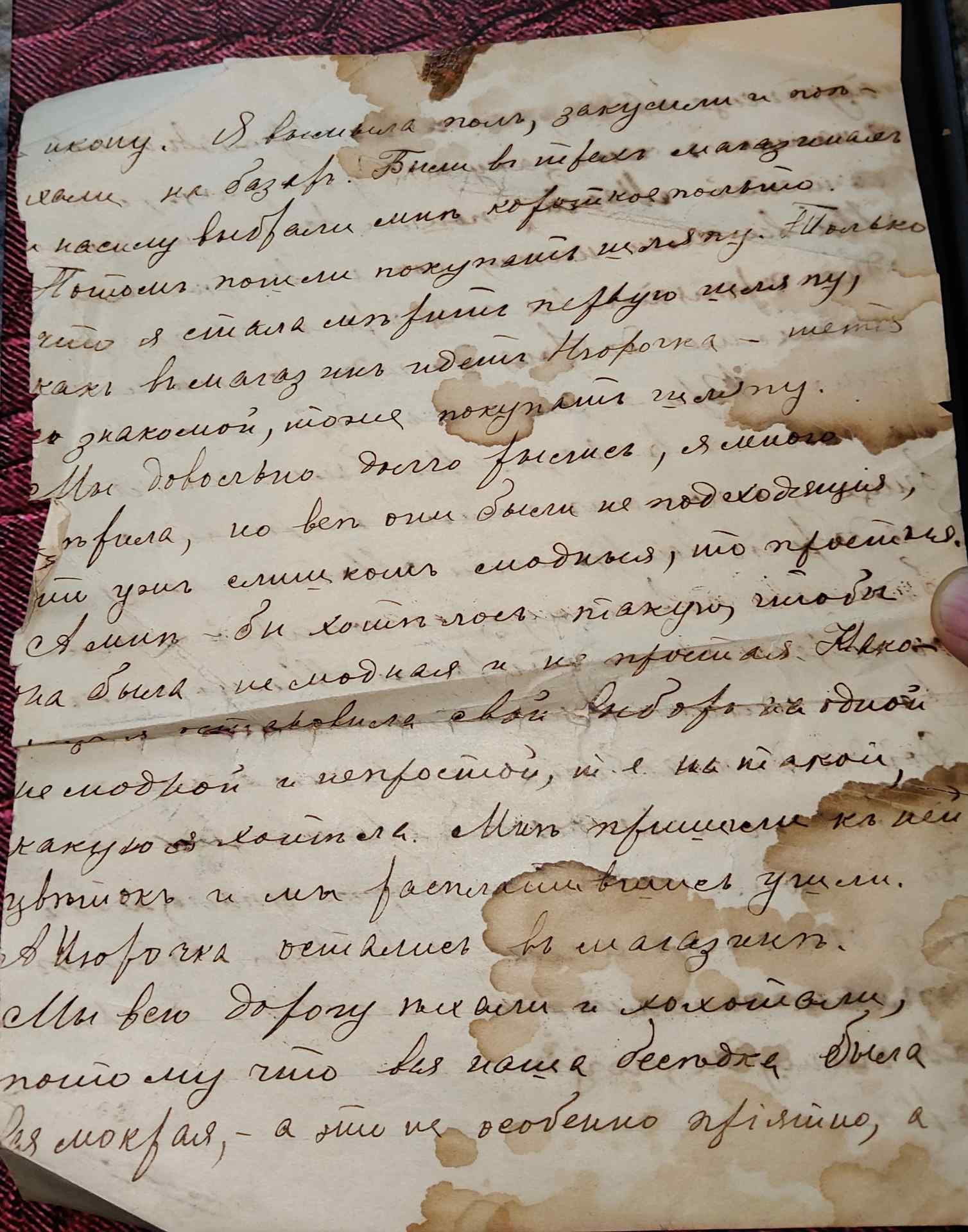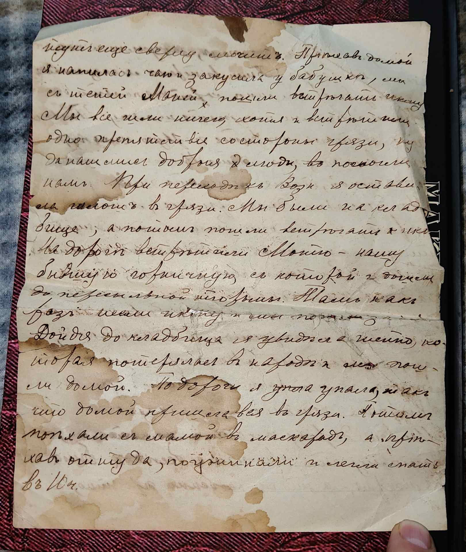 Мы довольно долго рылись, Я много мерила, но все они были неподходящие, то уж слишком модные, то простые. А мне бы хотелось такую чтобы она была не модная и непростая. Наконец я сделала свой выбор на одной не модной и непростой, т.е на такой, какую я хотела. Мы пришили к ней цветок и мы расплатившись ушли. А Нюрочка осталась в магазине. Мы всю дорогу ... и хахотали, потому что вся наша беседка была вся мокрая, - а это не особенно приятно ... ещё сверху мочить. Пришедши домой я напилась чаю и закусила у бабушки, мы с тётей Маней пошли встречать икону, мы всё шли ничего, хотя и встретили одно препятствие всё со стороны грязи, ну да нашлись добрые люди, помогли нам. При переходе к Возн. я оставила галоши в грязи. Мы были на кладбище, а потом пошли встречать икону. На дороге встретили Мотю - нашу бывшую горничную, с которой и дошли до пересыльной тюрьмы. Там как раз несли икону и мы по... . Дойдя до кладбища я увидела тётю, которая потерялась в народе, и мы пошли домой. По дороге я упала, так что домой пришла вся в грязи. Потом поехали с мамой в Маскарад и приехав оттуда поужинали и легли спать в 10 часов. Сообщение отредактировано pavelstatnik: Mar 16 2026, 14:31 |