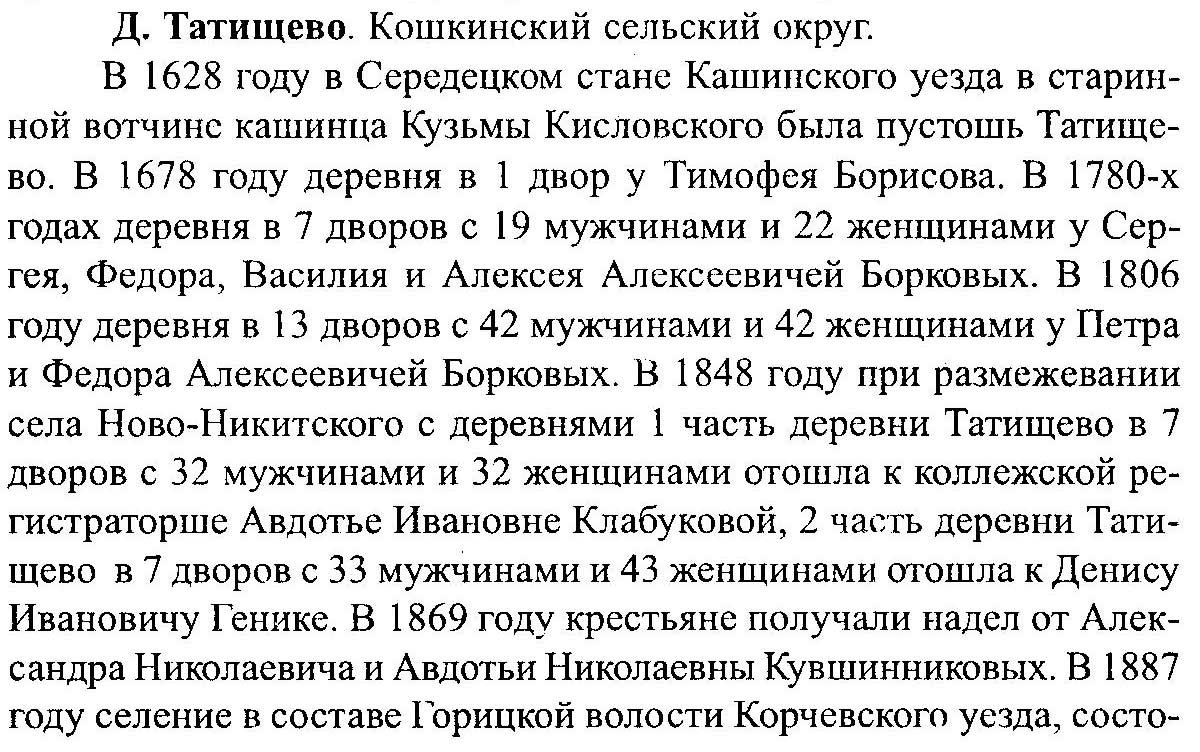Помогите, пожалуйста. Очень нужно описание деревни Татищево Корчевского уезда.