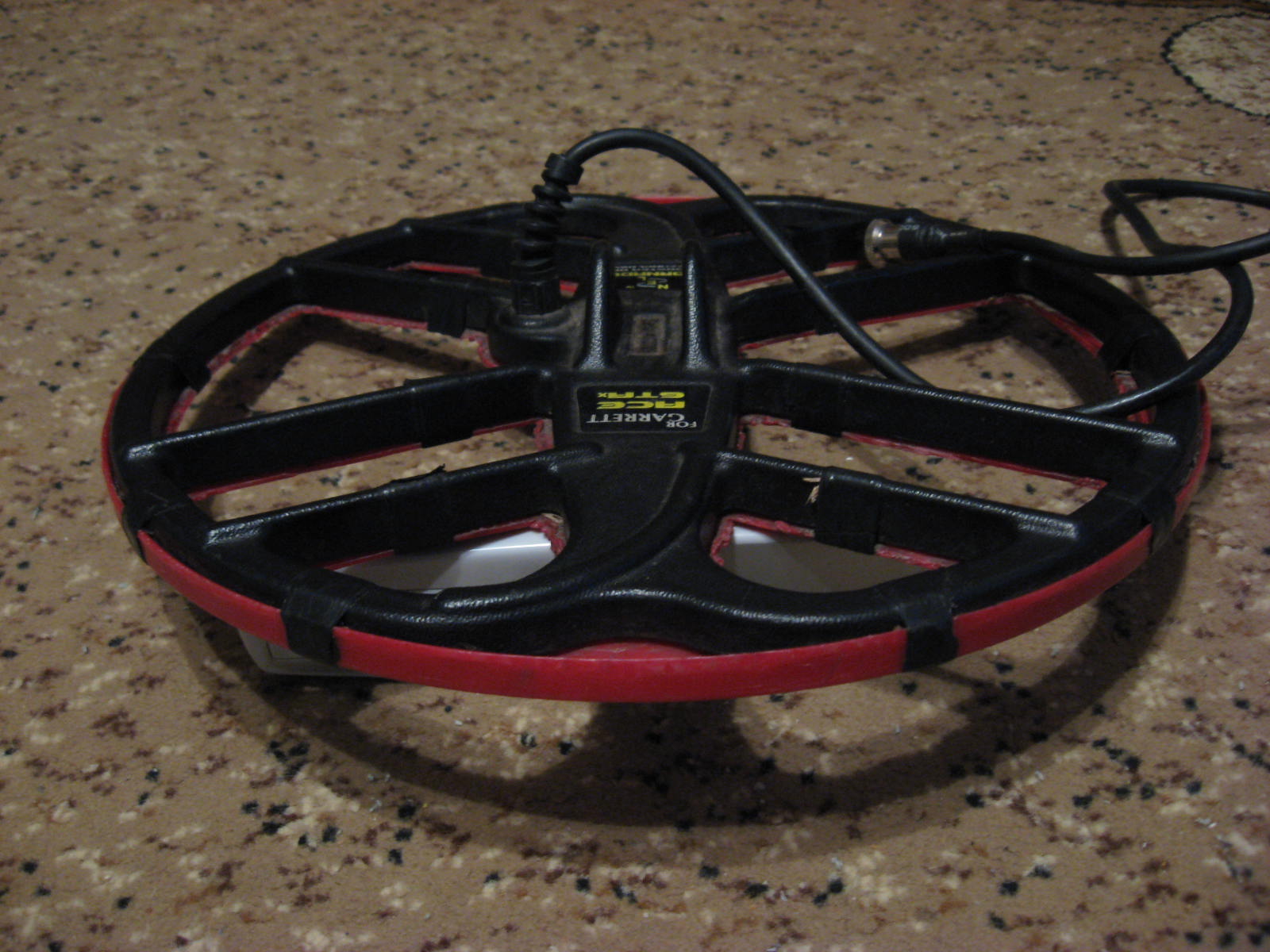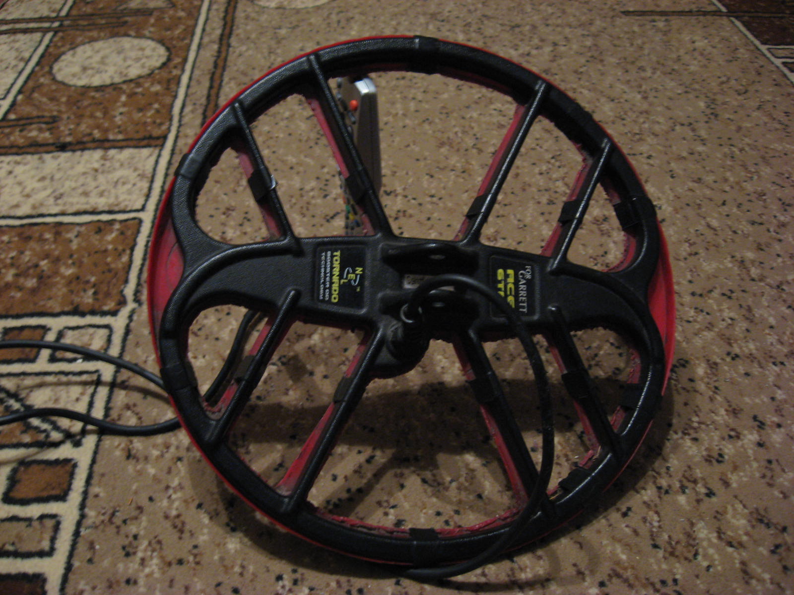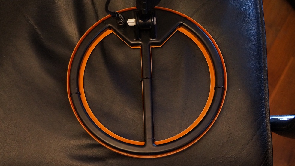 Основная опасность для катушки при поиске это удары краем катушки о камни. При поиске по полю или лесу защита не очень нужна, но если выйти на берег речки или фундамент, то лучше не рисковать. По этому был выбран такой-же вариант из плоского листа пластика, вырезанного с напуском 5мм шире катушки. Чтобы не попадала грязь и небыло глюков лист пластика приклеил на прозрачный силикон для наружного применения. Внешний вид отличный, и главное - все удары принимает на себя лист пластика, а не катушка (при способе обматывании изолентой удар на катушку только слегка смягчается .....) ![]() |