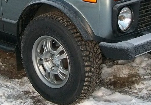 Моя Нива на уазовских колесах сейчас,прошипованная в 8 рядов на каждом.